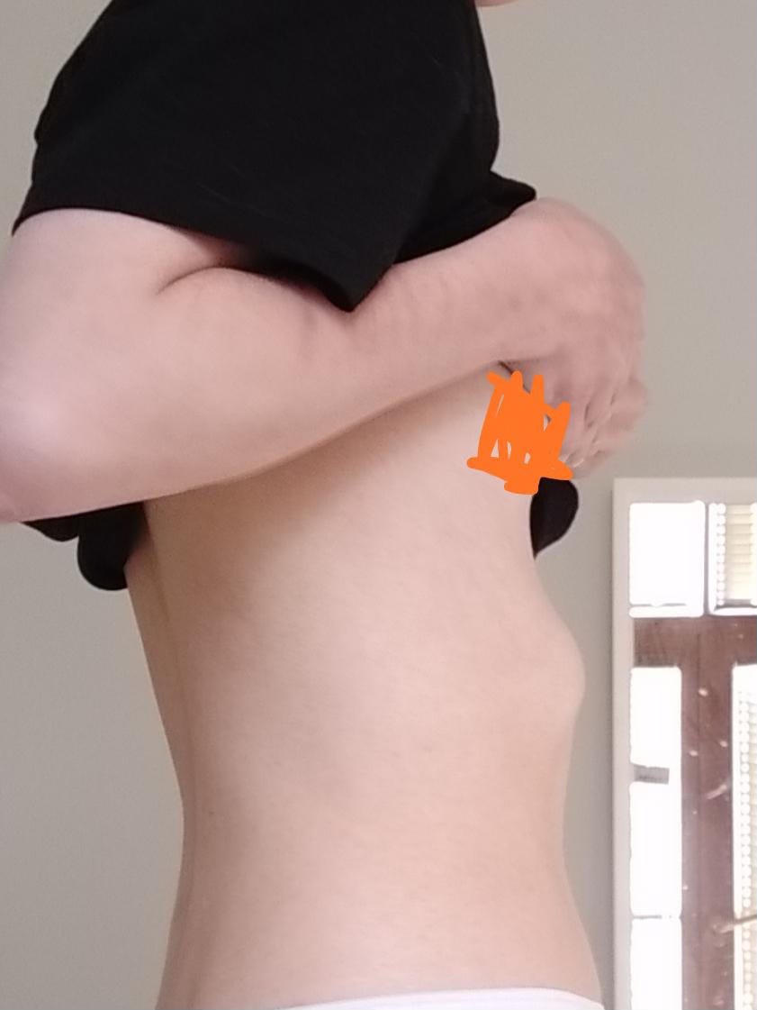 Though regularly flattening my breasts as a young teenager certainly did me some harm, the bulk of the problems came from the moment I turned 18 and was able to get a commercial breast binder from Gc2b. The relative comfort of the so-called “safe” breast binder compared to the other methods I had used, in addition to the sensory soothing aspect of compression, totally caused me to not realize just how much damage I was doing to myself. I wore it consistently until the age of 24.