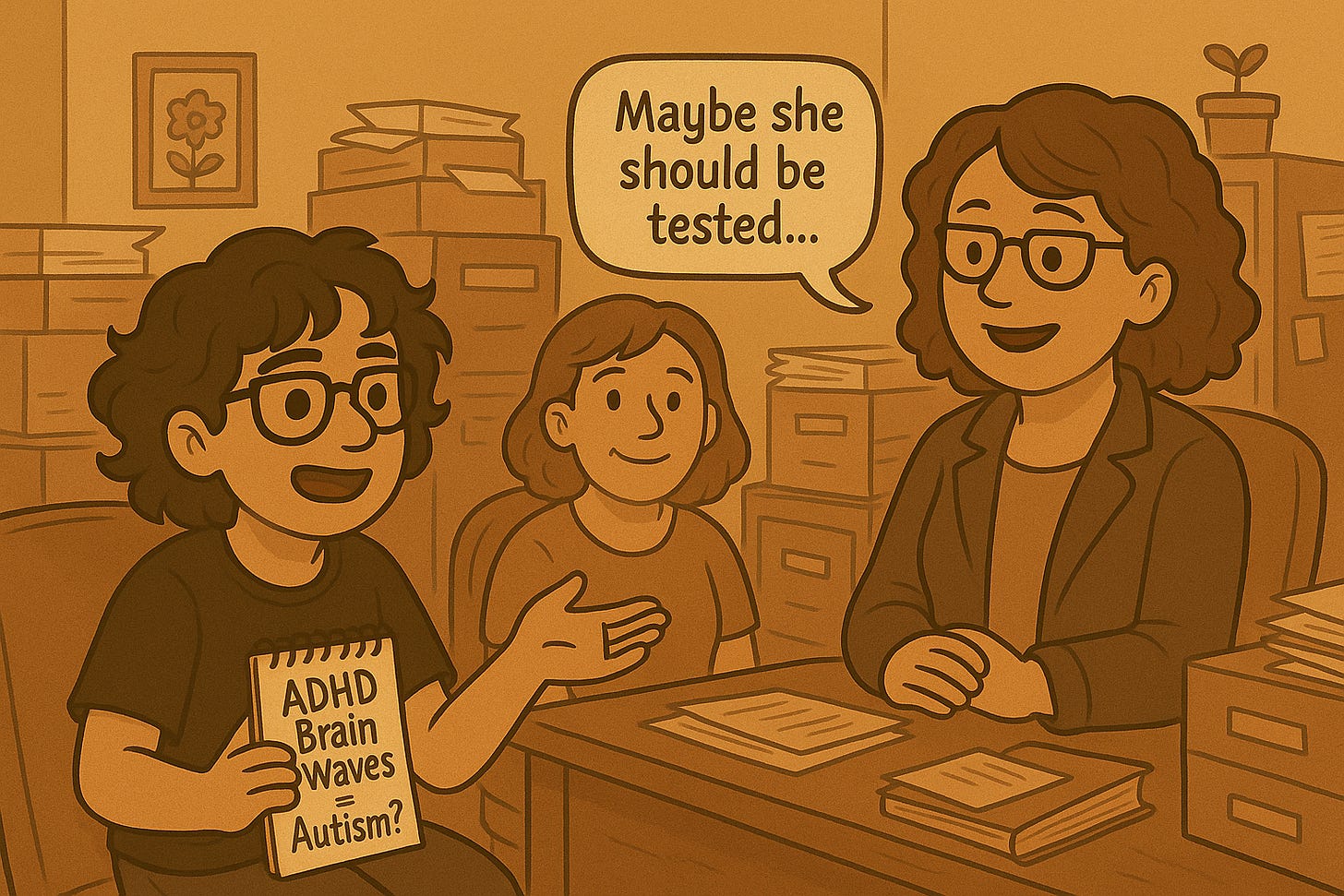As readers of my first essay know, I had already developed an intense interest in parenting books, which introduced me to a wide range of neurological conditions. In my desperate attempt to understand what was “wrong” with me, I had stumbled upon ADHD—only to be told my IQ test had ruled it out. Never mind that my executive functioning scores were abysmally low—there had been no referral. So instead, I began to pour my energy into what would become a more sustained and meaningful intellectual obsession: autism.