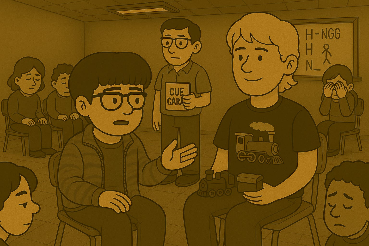 We teens sat in a circle on uncomfortable metal chairs while a man—whose energy could best be described as uncharismatic—led us through various activities meant to encourage social interaction. Once, he had us play a game of Hangman, which triggered one of the girls in the group to burst into tears. Apparently, it brought back memories of her suicide attempt. That moment deeply unsettled me.