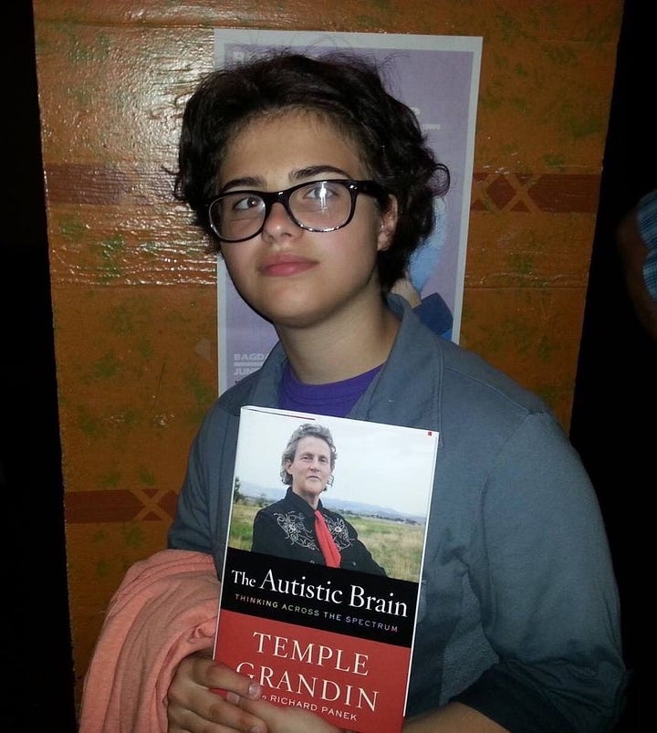 Eventually, I stopped going to the Autism Society. I wrote a few essays about what I’d observed and realized pretty quickly that it wasn’t the think tank experience I’d hoped it would be. I did become obsessed with Temple Grandin and felt like I was meeting a celebrity when she came to my city to speak.