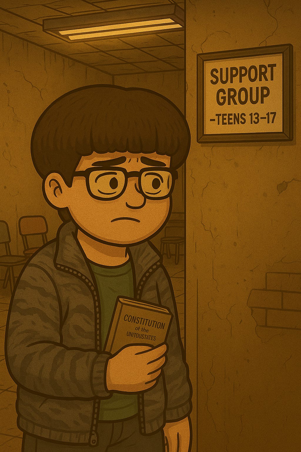 A few months after my ADHD diagnosis, I was enrolled—according to my family—in a support group for “socially awkward teens.” I walked into a somewhat dilapidated building that smelled like old dust, clutching my pocket-sized copy of the United States Constitution and rocking a bowl cut, completely unaware of what I was walking into.