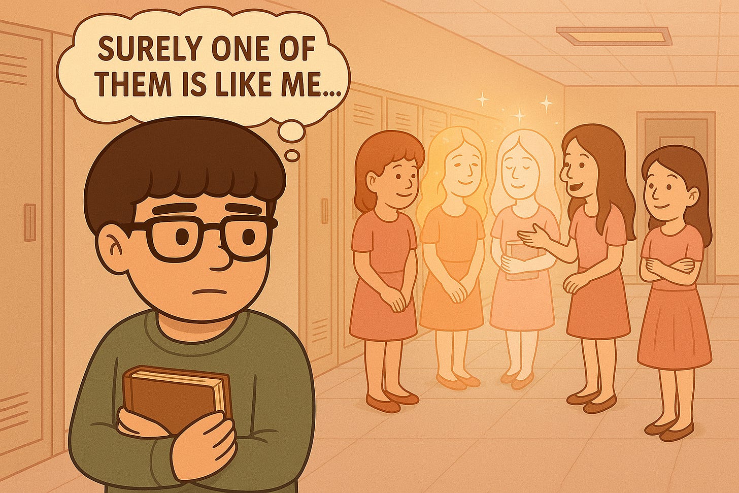 By the time my parents finished watching the tapes, I think they realized that while I was certainly socially odd, I didn’t belong in that group. But in my own mind, I didn’t belong anywhere—especially not in any setting with girls my age. That became painfully clear that year, as I was attending an all-girls school. Surely, I thought, there would be at least one girl there who was like me. I had crushes on many of them, but they also felt like an alien species—fascinating, distant, and incomprehensible.