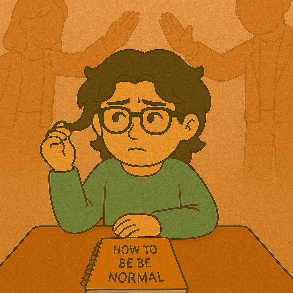 The adults around me didn’t see it that way. They slapped my hand away when they caught me twirling, insisting it was strange. But now that I had the attention span to notice a few social cues, I had tried to adjust. The hair twirling was my compromise—and even that was too weird. Each slap felt like a rejection of the self-regulation I had fought so hard to redirect, and it became yet another source of tension.